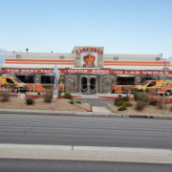 “ We came to this location because it has a California burrito (choice of meat, cheese, French fries, and pico), the location on Las Vegas Blvd, north of the strip, does not have it (FYI). My husband and I are from Southern California and this was close to the Cali burritos there but not quite. The balance wasn’t right. It needed a little more fries, there was a little too much cheese, where there were strings of cheese coming out when you bite into it, and we missed the guacamole. But it was pretty good! I ordered the chorizo breakfast burrito, which was filled with chorizo scrambled with eggs, rice, beans, cheese and it said it had sour cream but I didn’t taste it at all. It was also very good, and the green aquacate salsa was spicy and delicious, the green tomatillo salsa also had great flavor and not as spicy. They do have a large menu, with many choices, and the marinated pork that roasts on the spit, that they slice off fresh. Also the restaurant smelled clean and had lots of seating, with the typical taco shop music playing. ”